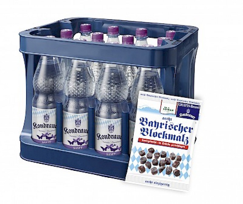 Ob Prickelnd, Medium, Sanft oder Naturell – Kunden, die einen Kasten Kondrauer Genuss-Mineralwasser kaufen, erhalten gratis, und solange der Vorrat reicht, eine Tüte aecht Bayrischer Blockmalz von Dr. C. SOLDAN dazu. aecht Bayrischer Blockmalz, das bewährte Hausmittel für Rachen- und Atemwege, wird nach jahrzehntelanger Tradition nach wie vor über offenem Feuer gekocht und nach dem Abkühlen in mundgerechte Stücke geschlagen. Er verspricht typisch bayerische Lebensart in Premiumqualität.