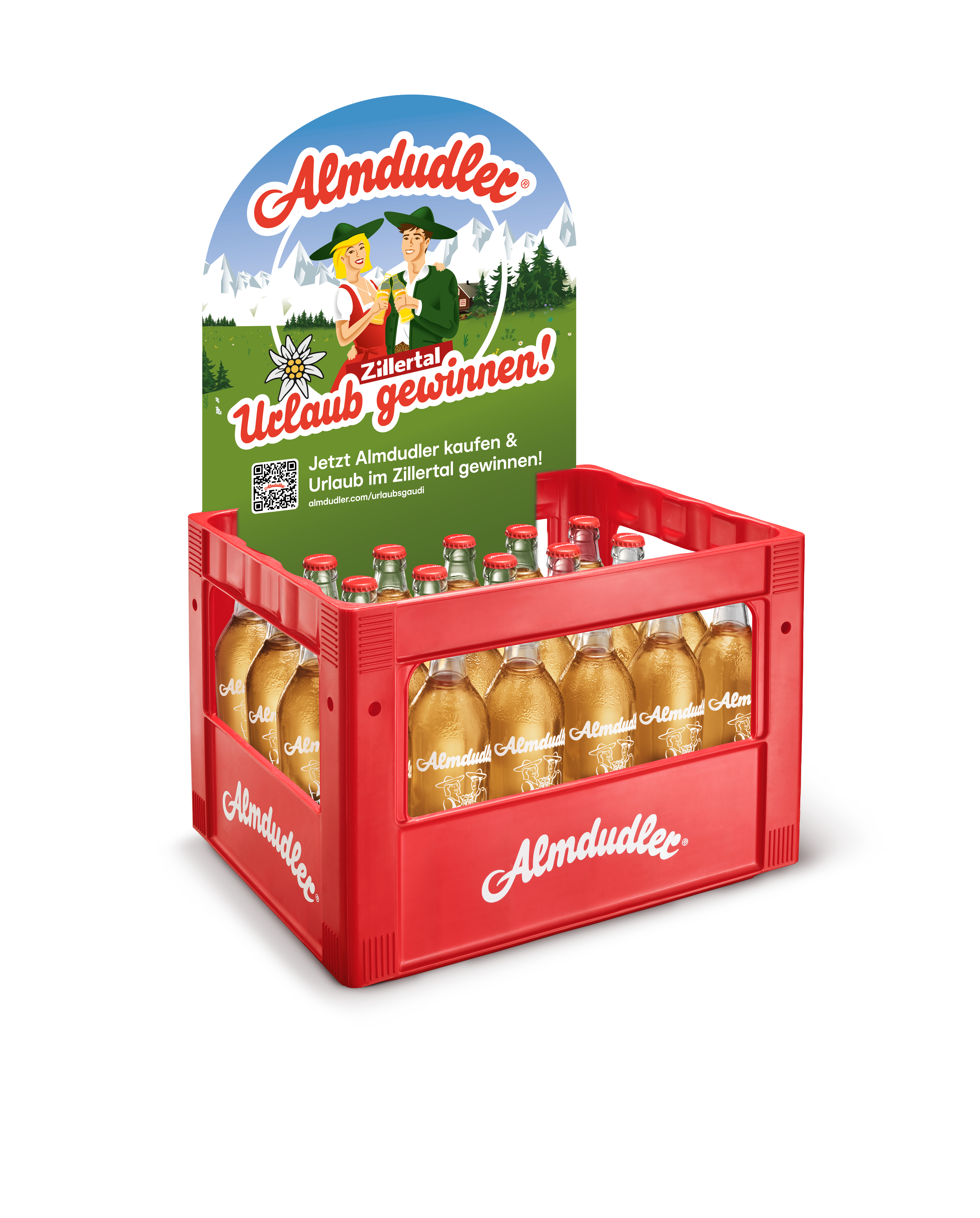 Nach einer erfolgreichen POS-Kampagne im vergangenen Jahr setzt Almdudler ab sofort seine Urlaubspromotion im deutschen Handel fort. 2025 erreichte die Kampagne rund 61 Millionen Kontakte, und wurde mit auffälligen Aufbauten am POS begleitet. An diese Performance knüpft die Marke nun an und bringt die abverkaufsstarke Promotion in Kooperation mit der Tourismusregion Zillertal bis Ende September erneut in den deutschen Handel. Im Zentrum der Aktion steht neben den attraktiven Urlaubsgewinnen wieder eine leicht zugängliche Gewinnspielmechanik: Konsumenten können durch das Hochladen ihres Einkaufsbelegs auf urlaubsgaudi.com ganz einfach an der Verlosung teilnehmen – unabhängig von Produktsorte oder Gebindegröße. Als Gewinn winken in diesem Jahr erneut Familienurlaube für jeweils zwei Erwachsene und bis zu zwei Kinder im 4*-Hotel im Zillertal. Inhaltlich rückt die Kampagne dabei stärker den Wunsch nach einer bewussten Auszeit in den Fokus – eine Pause und Belohnung vom Alltag, die sich auch im Markenerlebnis widerspiegelt: „Urlaub – Alm-inklusive!“